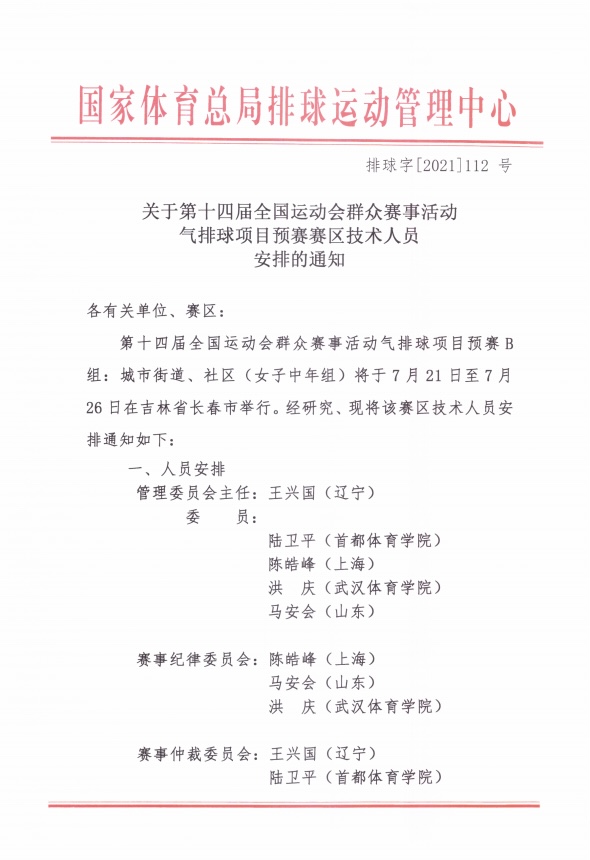 全运会群众赛事活动气排球项目预赛赛区技术人员安排的通知全运会群众赛事活动气排球项目预赛赛区技术人员安排的通知全运会群众赛事活动气排球项目预赛赛区技术人员安排的通知全运会群众赛事活动气排球项目预赛赛区技术人员安排的通知 本...